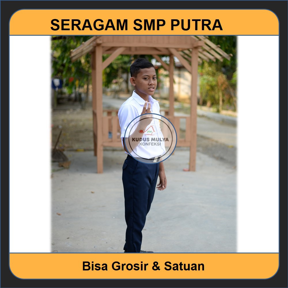 Baju terusan sekolah, sepatu hitam, dan kaos kaki putih polos yang telah disetujui oleh sekolah baju putih biru smp. Tingkat smp mengenakan kemeja putih dengan rok atau celana berwarna biru laut.